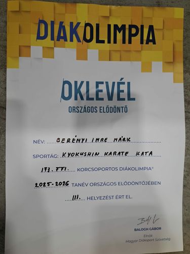 Diákunk kimagasló eredményei a Kyokusin Karate Diákolimpián